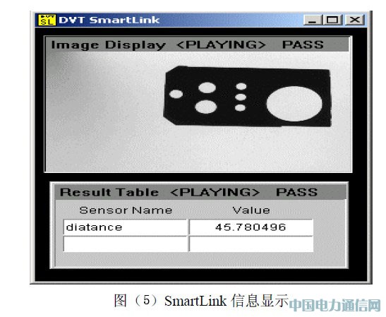SmartLink工程是使用SmartLink用户接口在PC机上进行开发的。一个SmartLink的工程包括在SmartLink中运行的监视应用的信息。启动SmartLink用户接口,打开仿真器,从智能图像传感器得到的图像信息就可以显示在PC机上了。当监视工程如希望的那样工作时,通过以太网或者串口,将工程下载到实际的SmartLink中。当工程运行时,信息就在连接于SmartLink视频输出端的显示器上显示。如图(5)所示