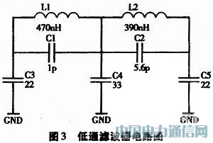 低通滤波器电路采用2阶LC椭圆低通滤波器,能有效抑制DDS的输出杂散。电路如图3所示。