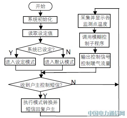 系统程序流程如图4 所示,系统应用程序主要由一系列用来实现相应功能的子程序组成,主要包括温度检测程序、ZigBee 无线通信程序、模糊控制程序、GPRS 无线通信程序等。