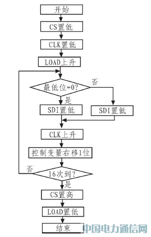 在DAC7714_write函数中,控制AT91RM9200的PA0-PA5引脚电平,模拟图2的时序完成DA输出,其流程图3所示。