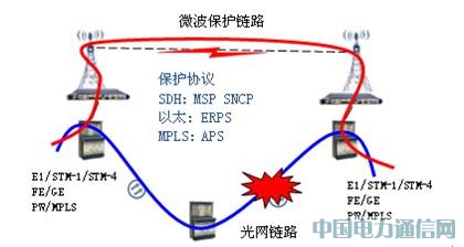 IP微波提供SDH开销透传功能,可以与现有MSTP光网络组成光+微波的复用段保护环;IP微波同时也支持ITU-T G.841的SNCP协议,可与现有光网络组成SNCP业务环实现子网连接保护。