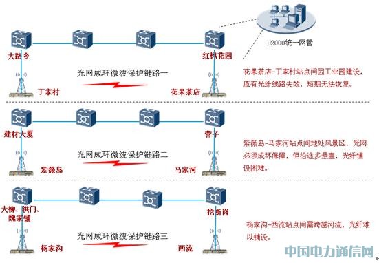随着国内光纤网络的逐步发展,IP微波在运营商众多的光网补网工程得到了广泛的应用。以某省移动公司为例,在该地区采用IP微波设备为三个不同地理环境的光纤网补网,充分发挥了IP微波良好的多业务接入、多速率适配以及统一网管的优势,快速低成本地完成了光网补环工程,确保了重要光网链路的稳定可靠运行。