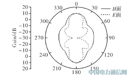 图4 f=1 600 MHz辐射方向图