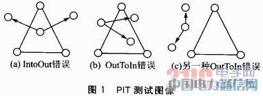 ①PIT测试中容易出现InToOut和OutToIn错误。InToOut错误即将三角形内部的点误判为在三角形外面。PIT测试图像如图1所示。当未知节点靠近或者正好在三角形的一条边上时,就容易出现上述的错误。