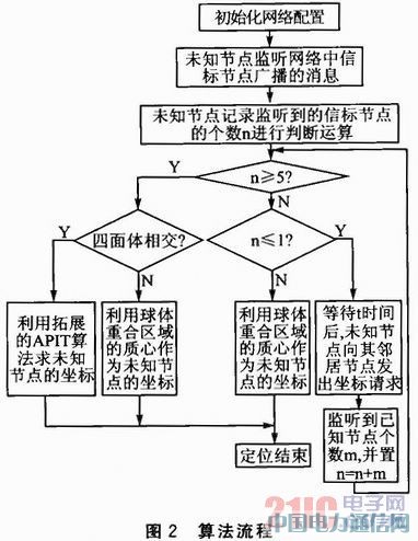 ①节点部署完成后,网络初始化配置。信标节点向网络广播消息(消息应该包含信标节点的ID、位置坐标等信息),而未知节点监听信标节点的消息。此阶段未知节点应随时更新接收到的信息,以防止冈网络的拓扑变化而造成的误差影响。