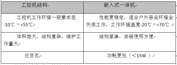 表1 工控机与嵌入式一体机对比