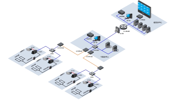 网络传输子系统主要包括交换机、光传输设备等,实现前端采集子系统与中心管理子系统之间的数据和图像信息传输。建设光纤链路作为前端与中心的数据传输通道,保证数据传输的实时性和可靠性。本次项目将全部采用光纤传输方式。