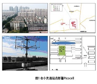 Picocell站点利用室分扰码组进行规划,采用和宏网同频组网的方案。Picoell基站设置利用原小灵通抱杆安装,呈对角线分布形式,信号从楼宇侧面入射,尽量向居民区深度覆盖。如图2所示。