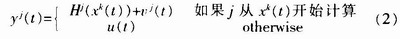 其中属于白噪声过程,包含在了目标非直线运动模型。并运用一个探测概率pd来计算目标状态的噪声。目标不被发现并被视为跟踪丢失的慨率为1-pd。本文设定了错误报警,其数量也遵循含有参数λfV的位置分布,其中λf是单位观测范围单位时间内的错误报警率。设n(t)为时间点t观测点的数量,该数量包括了噪声观测和错误报警。设为时间点t的第j个观测值,其中ny是每一个观测向量的维度。每个被测物体都会在该采样时间产生一个特定的观测值,如公式(2)所示,其中为观测值模型。
