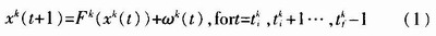 设为目标k的离散时间运动,其中nx是状态变化的维度。并设为时刻t目标k的状态。目标t的运动服从公式(1):