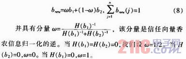 。香农信息法用计算两个信任向量的凸函数的方法求得一个融合信任向量: