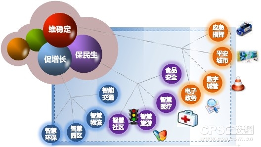 基于两大平台,提供维稳定、保民生、促增长三大体系的业务应用,业务全景图如下: