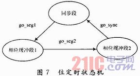 位定时设计 在位定时设计中采用了一个有3个状态的状态机。3个状态分别对应的是同步段和相位缓冲段1以及相位缓冲段2。传播段占用的时间短,在控制上没有特别的意义,仅作为物理层的传播延时,所以没有设计进状态机,位定时部分的状态机设计如图7所示。