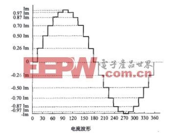 参考相关资料后不难发现:细分驱动技术常用近似正弦波的阶梯型电流代替矩形波电流,产生一个微步旋转磁场,从而带动电机以更小的步距角转动,其电流波形和旋转磁场矢量如图1所示。同时由于正弦波电流变化平滑,使电机运行更平稳、噪声更小。即通过改变相邻两相(A,B)电流的大小和方向(A相正弦波和B相余弦波矢量叠加),以改变合成磁场的夹角,通过电流矢量合成的方式来控制步进电机运转。