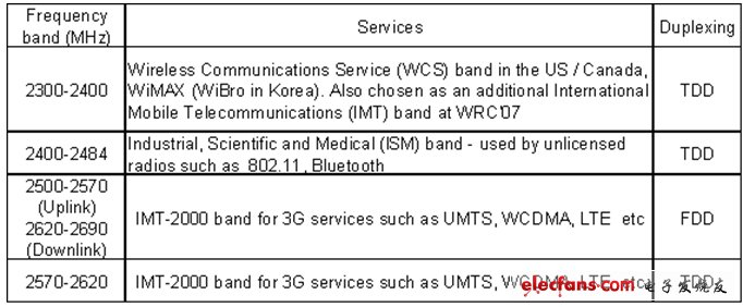 消费者会担忧蓝牙802.11 AMP和IMT-2000服务间干扰的基本塬因之一,在于它们都在相邻的频谱下工作(见表1),而将802.11用于高速蓝牙传输会对工作在相邻授权频段的其它服务造成严重的影响。