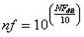 请注意,由于噪声因子 (nf) 与增益 (g) 属于线性关系而非对数 (Logarithmic) 关系,因此以小写表示之。下列即为增益与噪声系数,从线性转换为对数 (反之亦然) 的等式: