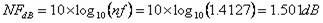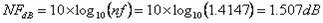 若要将噪声因子转换为噪声系数 (单位为 dB),则可套用等式 3 以获得下列结果: