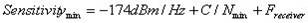 一般来说,接收器上的 GPS 译码芯片组,将得出定位作业所需的最小 C/N 比值。然而,又必须透过整组接收器的噪声指数,才能决定目前功率强度所能达到的 C/N 比值。因此,当量测敏感度时,必须先了解定位作业所需的最小 C/N 比值。