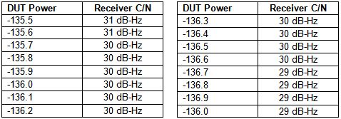如图 17 所示,此量测范例的 RF 功率与 C/N 比值,几乎是呈现完整的线性关系。而若使用高输入功率模拟 C/N 比值,将产生例外情况;接收器报表将出现可能的最大 C/N 值。然而,因为在任何条件下,进行实验的芯片组均不会产生超过 54 dB-Hz 的 C/N 值,所以这些结果均属预期范围之中。