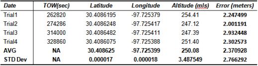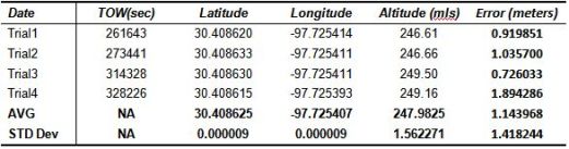 而针对我们所使用的接收器而言,其水平定位最大误差为 5.2 公尺,水平定位平均误差为 1.5 公尺。而透过图 18 所示,我们所使用的接收器均可达指定的限制之内。