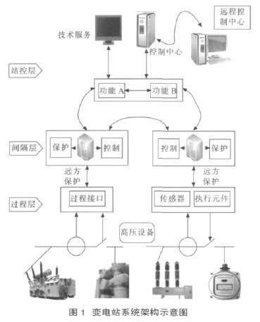 变电站内电磁环境复杂,所采集到的模拟信号在传输的过程中不免受到外界的各种干扰而产生信号失真,为了解决模拟信号在长距离传输后所导致的失真问题,现在倾向于将微弱的模拟信号就地模拟转换,采用现场总线技术,由主机进行循环检测及处理。依据IEC61850关于变电站功能、变电站通信网络以及整体系统建模的分层设定,智能变电站分为三层结构:过程层、间隔层、站控层。如图1所示。分层(级)分布式的结构采用模块化设计和现场总线控制技术。它由安装在变电站内的数据采集及处理系统和安装在主控室内的数据分析和诊断系统,再通过网络,把若干个变电站的监测数据汇集到相关管理部门的数据管理诊断系统,实现对多个变电站的电气设备状态的实时状态监测。