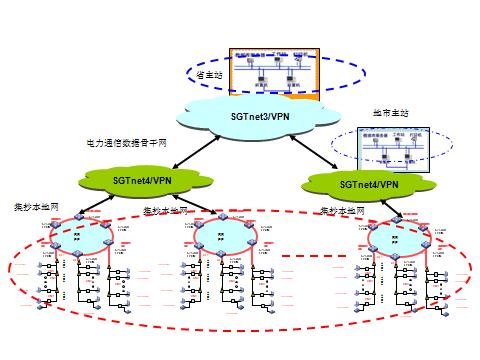 主站集中部署仅在省公司部署一套主站系统,实现统一的通信接入平台,直接采集全省范围内的所有现场终端和表计,集中处理信息采集、数据存储和业务应用,这种方式只适合用户数较小区域;主站分布式部署,每个地市公司1套,由于低电压等级变电站在市区数量众多,如果所以ONU均直接连接到市公司的OLT上,由于数量多,会对网络稳定运行带来影响,在电力行业的广域网项目中,网络划分为核心、汇聚、接入3个层次。其中汇聚层非常关键,起到了承上启下的作用,为此在用户用电信息采集系统中必须根据3层架构进行组网,设置分布式多台OLT分担地市公司的负载。同时,为了确保可靠性,还可以将多台OLT之间进行环网连接,实现一个可靠的保护。如图4所示。