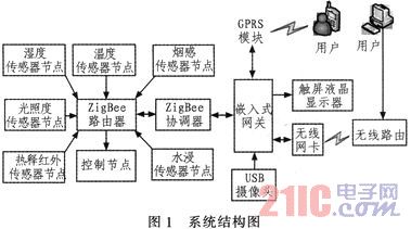 本系统硬件主要包括3部分,其中无线传感器网络核心是基于TI公司的CC2430开发的无线模块;网关是基于ARM微处理器的嵌入式平台;主控中心是PC机。