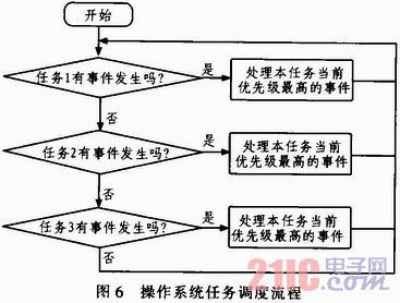 操作系统是通过调度各项任务来使整个系统协调的运作起来的。对不同类型设备的处理作为一个任务,把新建的任务添加到系统中,操作系统便会把新任务与协议栈融合到一起,使系统具备新的功能,即完成了无线传感器网络软件平台的搭建。
