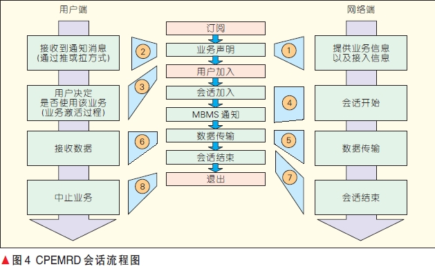 CPEMRD 多媒体业务的会话流程如图4 所示[5]。会话开始和会话结束都由BM-SC 发起,为多媒体数据传送建立或释放相应网络资源。