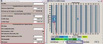 然后,LTE Release 8的后续演进是LTE Release 9,从信号物理层方面来看,Release 9主要在下行链路方向做了改进,主要增加了三个特性:“Positioning reference signal(定位参考信号)”、“Dual layer beamforming(双流波束赋形)”、“MBMS single frequency network(广播多播单频网业务)”,R&S的信号源SMU200A能够产生完全符合上述所有新特性的LTE信号。以定位参考信号的产生为例,信号源SMU200A允许用户根据3GPP的规范修改多项参数,如发射周期、带宽、功率等。图3显示了SMU200A产生顶位参考信号的配置界面和定位参考信号的分布图。