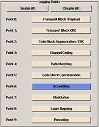 上文介绍了SMU200A能够产生符合LTE至LTE-A各个版本的上下行信号。此外,SMU200A还提供基带算法验证功能。目前,国内LTE Release 8的设备已经比较成熟,各厂商已经开始LTE Release 9 和 Release 10的研发工作,而在研发初期,基带算法研发人员对3GPP规范给出的算法理解可能会有偏差,R&S的信号源SMU200A为此提供了数据验证功能,研发人员可以将自己做的数据向量与信号源做的数据向量进行比对,SMU200A可以在9个不同的数据处理节点位置产生数据向量用于比对,这有助于研发人员快速定位问题。图6显示了SMU200A能够在9个不同的数据处理产生数据向量。
