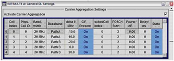 例如在LTE-A的下行方向,需要实现载波聚合,R&S的信号源SMU200A可以设置多达5个LTE载波,每个载波的参数可以单独设定,完全可以满足LTE-A的要求。SMU200A LTE-A 载波聚合的配置界面如图4所示。