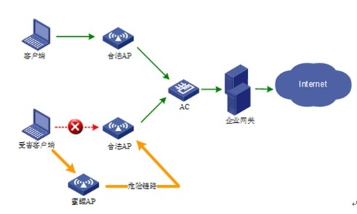 WLAN发展至今,在安全性上也做了不少改进。比如加密认证体系已经由原来的WEP过度到了802.11i。企业通过802.1X认证与CCMP强加密,可以最大限度的保护无线数据安全,即使恶意攻击者监听到了这些报文,由于报文已被强加密,因此他还是无法还原出原始数据。但是,使用802.11i仍然无法完全保护企业无线网络不受恶意攻击。例如,攻击者可设置蜜罐AP诱惑用户连接、或通过泛洪(FLOOD)各种WLAN协议报文使企业无线网络无法使用。