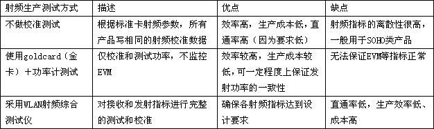 表1 WLAN产品射频生产测试方式
