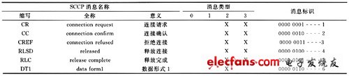 表1 SCCP消息类型