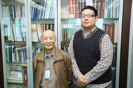 图为记者王浩森与赵梓森院士(左)合影。