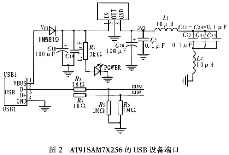 2.2 AT91SAM7X256的USB设备端口设计