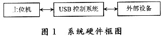 整个系统的硬件框图如图1所示。可以看出USB控制系统在整个系统中起到桥梁作用,用于连接上位机和外部设备。