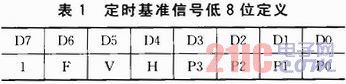 F、V、H是标志位,取值可为0或1。F位标识图像数据是奇场数据还是偶场数据,V位标识当前数据是否为有效数据,H位标识该定时基准信号为SAV还是EAV。F、V、H标志位的取值与含义如表2所列。其中低四位P3~P0是由高4位经异或运算获得,用于F,V和H值校验和纠错码。 P3~P0的定义为:P3=VH,P2=FH,P1=FV,P0=FVH。