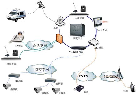 系统可实现主会场与各分会场间的点对点、点对多点、多点对多点的可视指挥,通过选配网关实现传送各会场的动态监控图像,系统目标实现最快的命令传达,最优的部署安排,最快捷的前后方信息反馈。