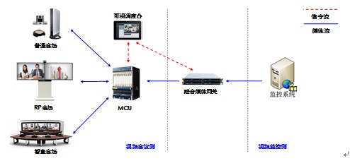 智真会议系统与安防系统融合,在智真会议中可以任意调用安防系统和图像。;