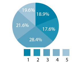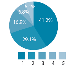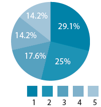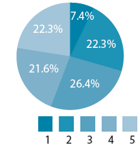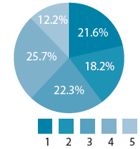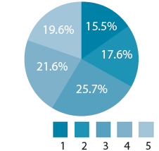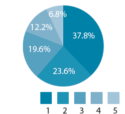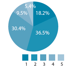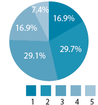 图5 受访视频企业/机构对“目前最大的问题是对于OTT视频的保护力度不够,盗版盛行”的紧迫性排名的调研结果。图例中:“1”代表“认为最紧迫”,“5”代表“认为最不紧迫”。