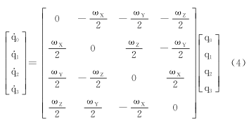 四元数微分方程如式(4)所示,四元数姿态矩阵微分