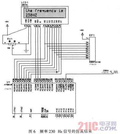 本系统为了方便检测,利用了89S52的ALE(30脚)完成了自检功能,完成此项功能还需要CD4060的辅助(完成14分频)。CD4060表示14位二进制串行计数器,引脚及功能略;CD4060由一振荡器和14级二进制计数器位组成,振荡器的结构可以是RC或晶振电路。CR为高电平时,计数器清零且振荡器使用无效,所有的计数器位均为主从触发器CP1非(和CP0)的下降沿计数器以二进制进行计数,在时钟脉冲线上使用施密特触发器对时钟上升和下降时间无限制。其在系统中的电路构成在后面的整体仿真图有阐述。根据系统框图的介绍,一般采用从外界接收正弦波、方波、三角波并进行测量周期的方法,如要进行对外界接收正弦波、方波、三角波、进行测量,必须经过放大(衰减器、放大器)、整形(施密特触发器、跟随器)两个过程才能转换成标准测量方波,送到闸门以便计数。而需完成放大整形过程是由于输入的信号幅度是不确定的,可能很大也可能很小,这样对于输入信号的测量就不方便了,过大可能会把器件烧毁,过小可能器件检测不到,所以在设计中应考虑对输入波形进行放大限幅、整形和阻抗变换(运算放大器构成的射极跟随器其阻抗变换作用,使输入阻抗提高)。