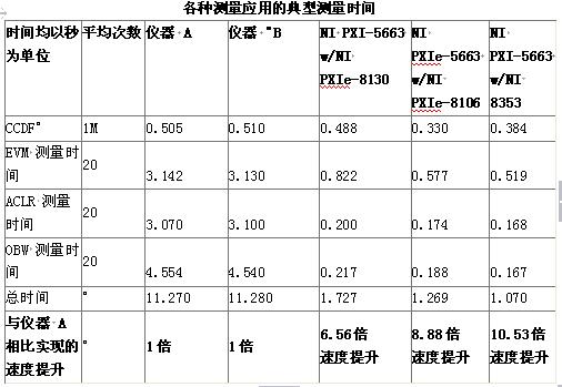 表2. 传统仪器和PXI仪器的WCDMA测量时间。