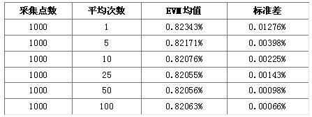 表3. 在不同的平均次数的情况下的EVM和标准差。