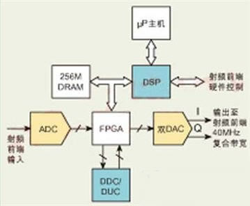 实现数字信号处理有三种最基本的方法。第一种方法是利用普通计算资源(例如PC机)以软件方式实现所有的信号处理;第二种是定义一个用来实现信号处理功能的逻辑电路,并用现场可编程门阵列(FPGA)来实现这个逻辑电路;第三种方法是利用专为实现数字信号处理所需功能而设计的可编程硬件,包括数字信号处理器(DSP)和数字上变频(DUC)以及数字下变频(DDC)器件等。