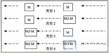 DT1消息在网络中的传送共4种可能,每种类型中右边的表示本条DT1消息,图6左边的表示上条DT1消息,两消息中都有M指示,下面分别说明。