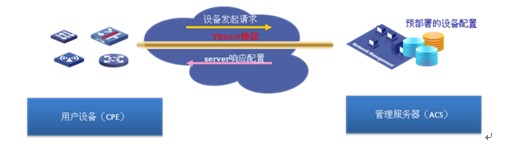 早在2004年,DSL论坛(现已改名Broadband论坛)推出了TR069技术规范,用以实现对网关、路由器、机顶盒等设备的集中管理。基于该协议,初始安装时,用户设备会自动寻找管理服务器,建立连接后即可与服务器通信,实现自动配置升级、软件版本管理、状态监控及故障诊断。如图1所示。