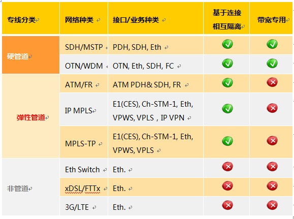 常见的专线网络技术可进一步细分为硬管道,弹性管道和非管道(见下页表)。